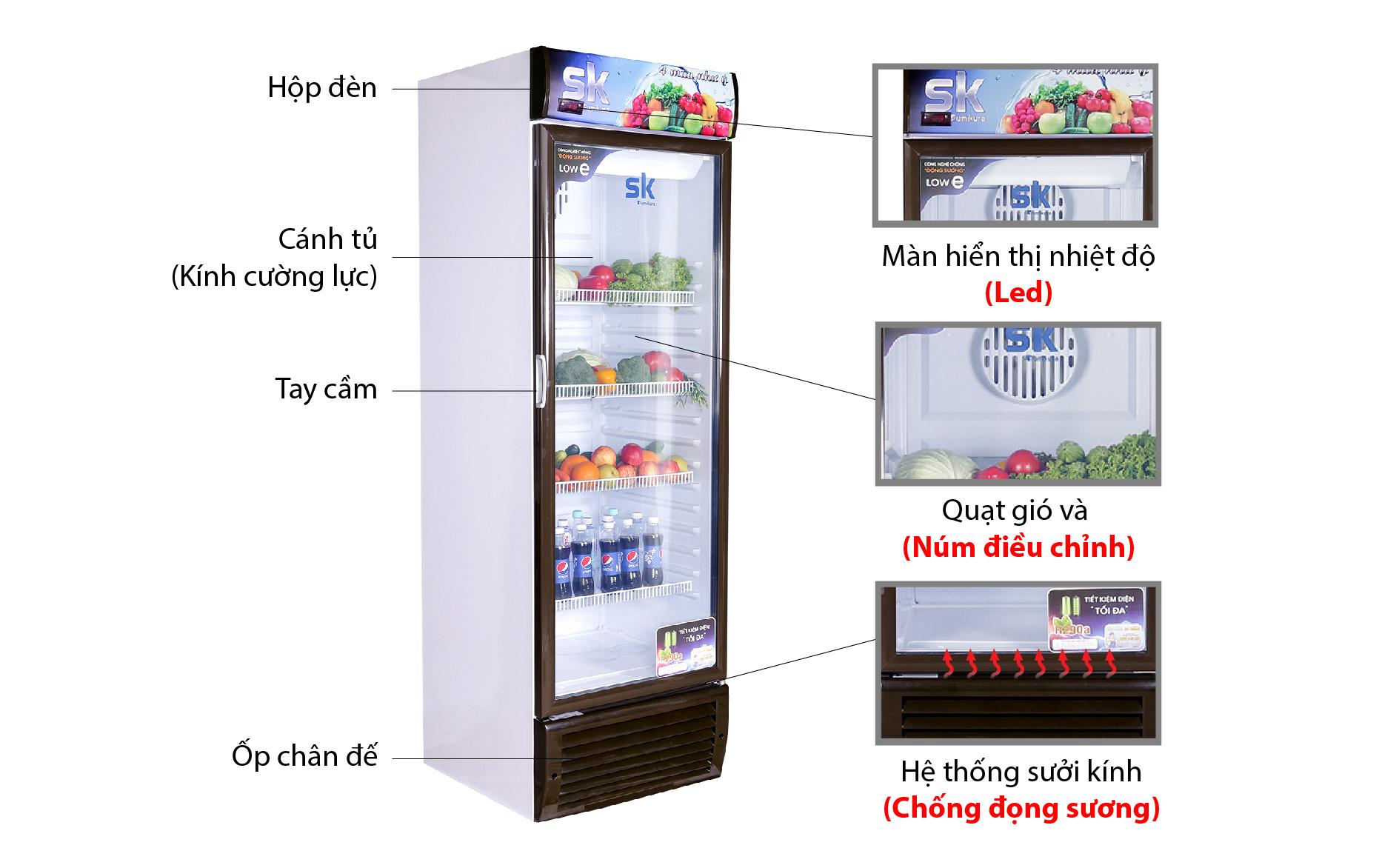 Tủ mát Sumikura SKSC-450 có thiết kế 1 cánh sang trọng, nhỏ gọn phía bên trong tủ được bao phủ bởi lớp nhựa ABS màu trắng sáng. Nhờ vậy, tủ sẽ tạo cảm giác sạch sẽ, hợp vệ sinh, phù hợp cho nhu cầu bảo quản thực phẩm. Với thiết kế bắt mắt của dòng sản phẩm, bạn có thể dễ dàng trưng bày trong bất kỳ không gian nào. Không chỉ có vậy, lòng tủ có khả năng chịu va đập cao. Cánh cửa tủ được thiết kế từ kính trong suốt chịu lực 2 lớp, ở giữ hút chân không giúp bạn dễ dàng quan sát, lấy và sắp xếp thực phẩm. Tay cầm có thiết kế chìm chắc chắn, tiết kiệm diện tích. Thiết kế sần nhẹ chống trơn trượt, cửa mở ra đóng vào dễ dàng hơn. Hệ thống đèn LED được trang bị làm nổi bật không gian phía trong tủ, phù hợp với việc trưng bày thực phẩm tại các cửa hàng, siêu thị.